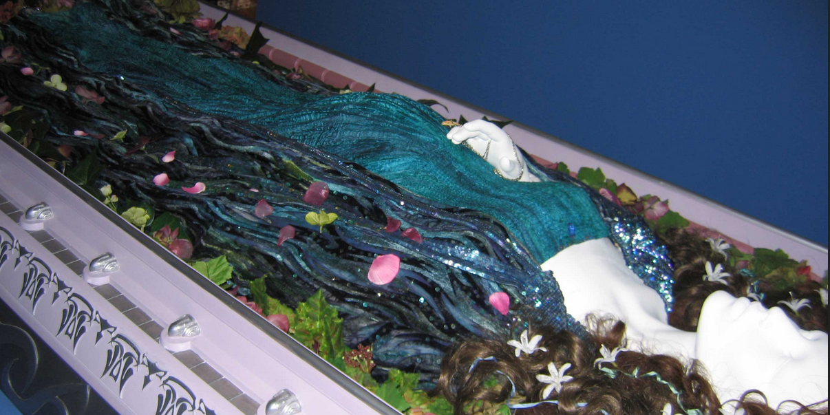 Because the original gown was made to be worn in the coffin, while you usually wear the dress standing and walking, and you’re not enclosed in a frame.