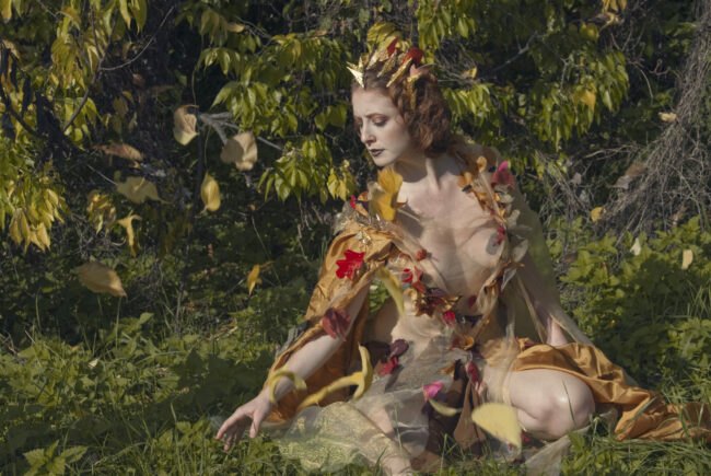 A dress inspired by the autumn golden light and the falling leaves.