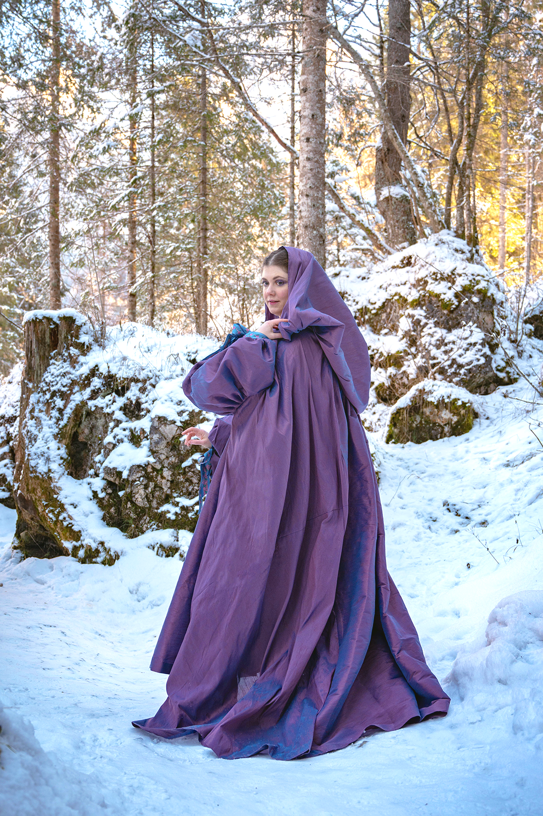 These qualities cannot coexist with a heavy or insulating fabric. If you are looking for a warm cape, have a look at this!