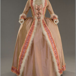 So what do you have here? La gatrta bianca is a robe à la française in all its glory. This means the dress will have a stomacher at the front, a separate skirt, and the back box pleats flowing to the floor.