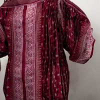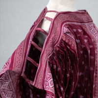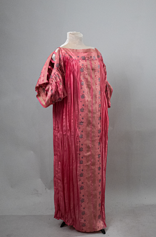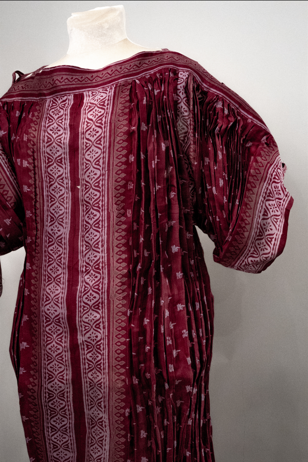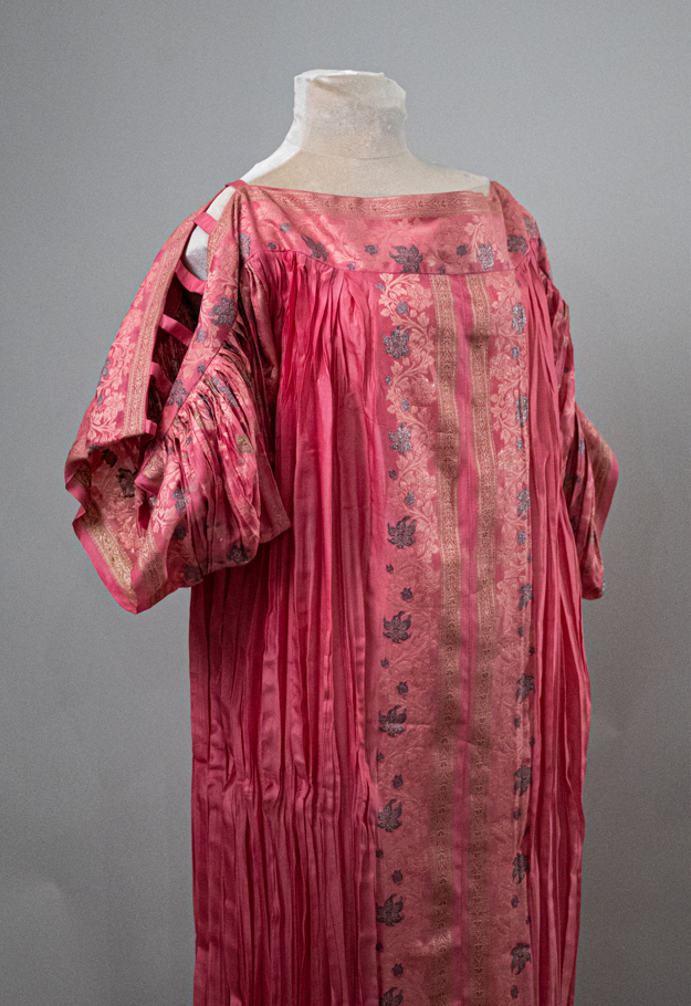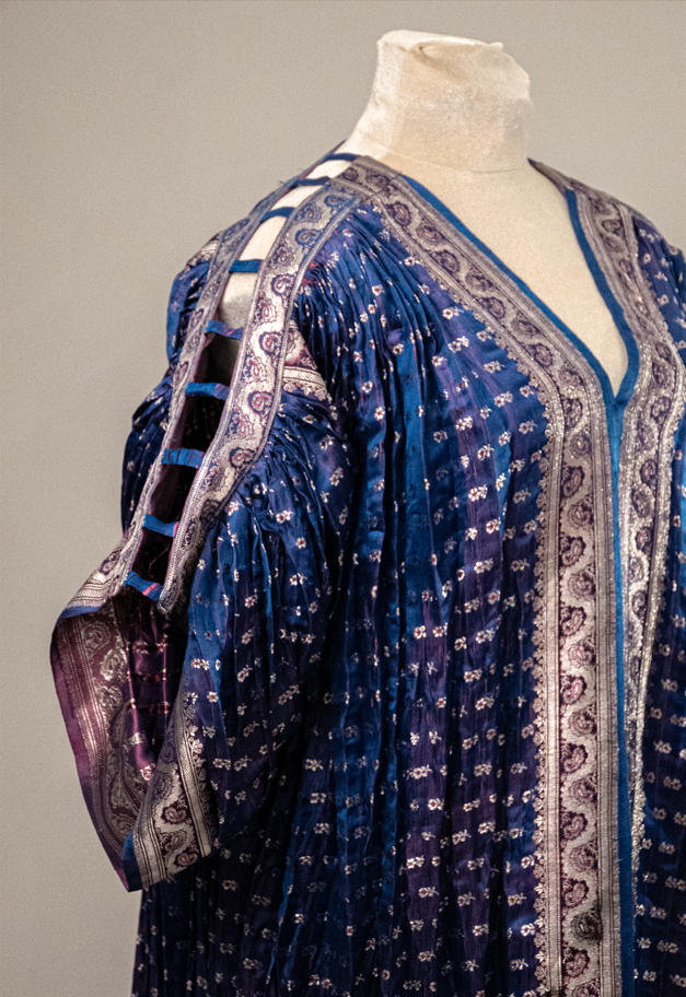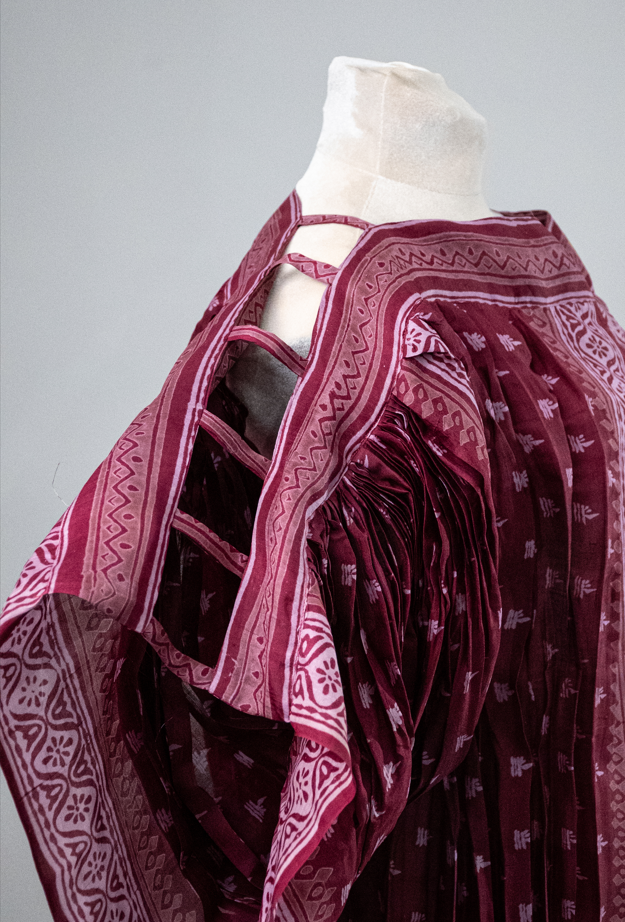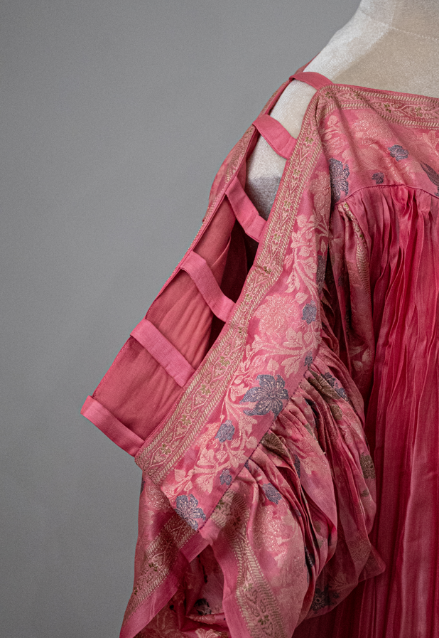 Crafted from hand-pleated, upcycled vintage silk sarees, this one-of-a-kind garment doesn’t aim to recreate Greco-Roman fashion, but rather to echo the soft opulence of Victorian painters like Alma-Tadema and Godward, through a modern, poetic lens.