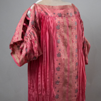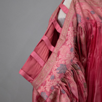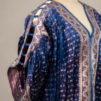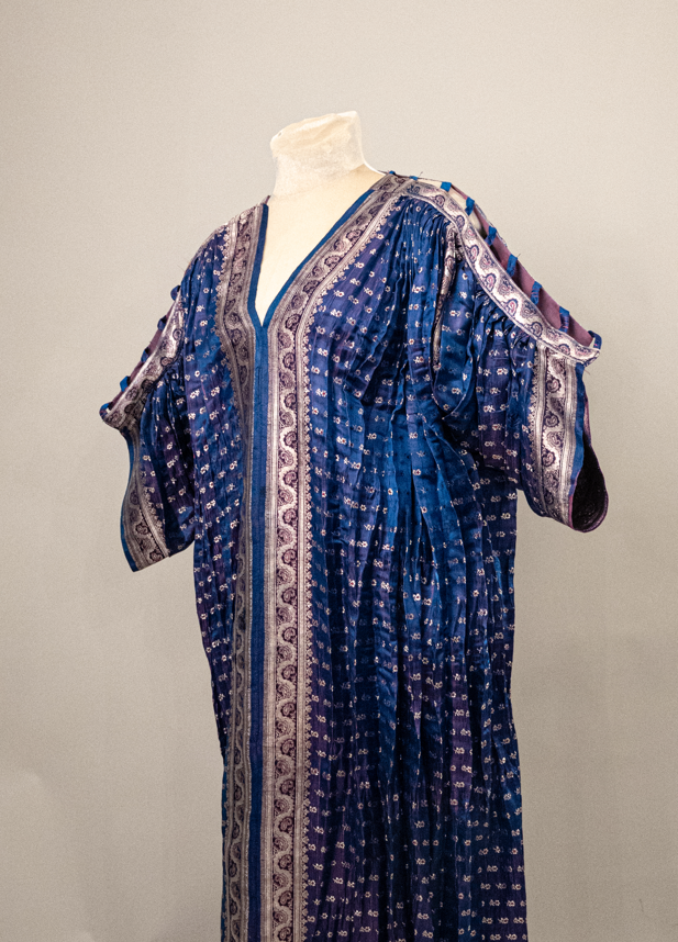 No two are alike. Each gown is made from reclaimed silk, shimmering sometimes with metallic brocade or satin details, adorned with bullion embroidery, or blooming with faded florals. They are intentionally extra-wide, and designed to be styled freely, with ribbons, sashes, or jewels of your choosing.